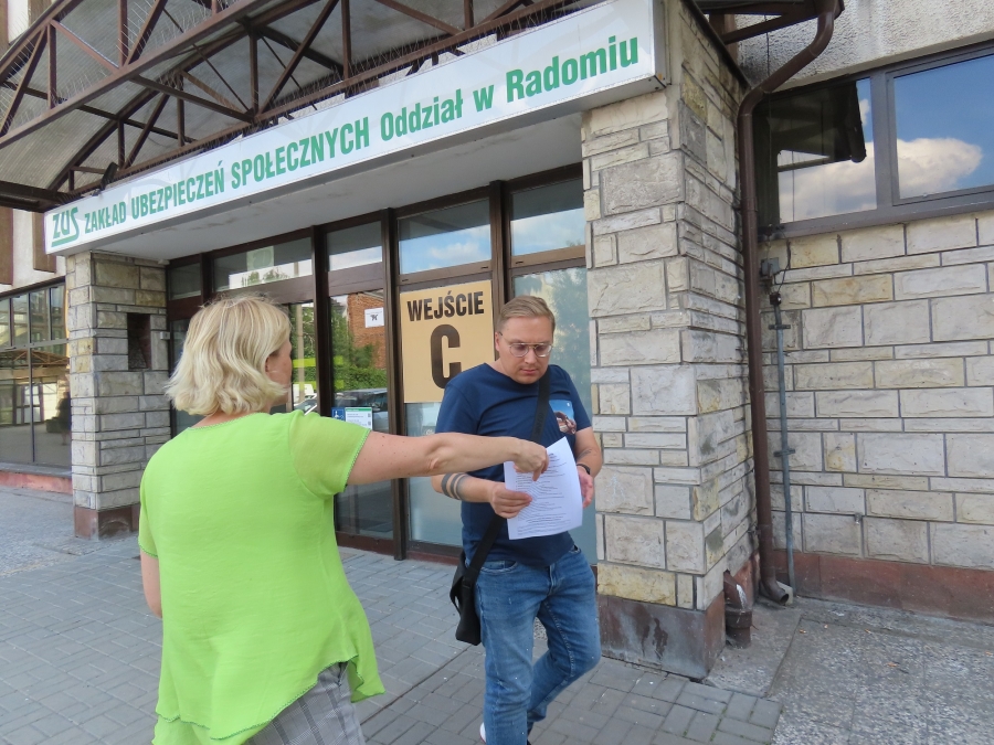 7 lipca b.r. miała miejsce kolejna odsłona naszej lewicowej letniej akcji ulotkowej. Tym razem materiały edukacyjne dotyczyły mobbingu w miejscu pracy, na jakie zachowania mobbera powinno się zwrócić uwagę, by móc właściwie zareagować. W akcji wzięli udział przedstawiciele Nowej Lewicy w Radomiu – inicjatorka akcji Małgorzata Maria Ziemnicka, wiceprzewodniczący Patryk Fajdek i Ewa Barszczyńska, którzy przy Zakładzie Ubezpieczeń Społecznych Oddział w Radomiu rozdawali związane z tym tematem ulotki i rozmawiali z zainteresowanymi tym tematem ludźmi, zarówno tymi starszymi, którzy pracują i którzy często sami byli świadkami takich sytuacji w miejscu pracy, jak i z młodymi, których ten problem w przyszłości może dotyczyć. Najlepszym orężem w walce z takimi nieprawidłowościami jest wiedza i wsparcie otoczenia.